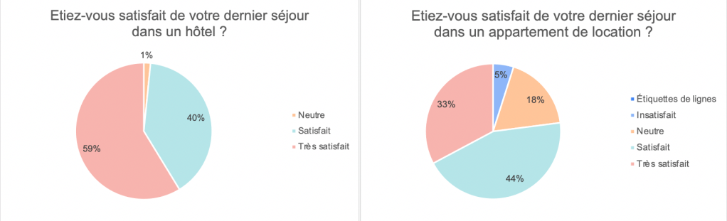 - Expériences et satisfaction : Expériences passées avec les hôtels et les appartements en location, niveaux de satisfaction, et les raisons de préférer un type d’hébergement à un autre.